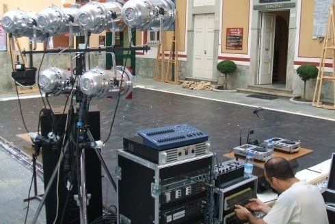dell'allestimento di un palco e della scenografia: il nostro personale è specializzato nell'allestimento di tappeti e sbarre da danza, quinte laterali, fondali palcoscenico, specchi autoportanti, quinte, americane; il tutto adattabile ad ogni tipo di area: dalle palestre alle piazze o al parco all'aperto.