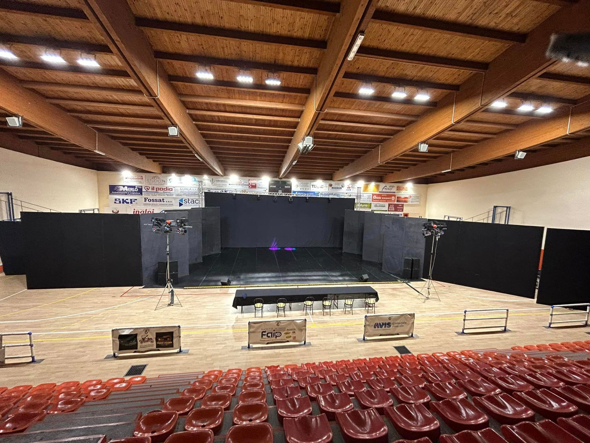 Utilizzando materiale teatrale omologato siamo in grado partendo da una palestra o un palazzetto un area spettacolo a costi contenuti.